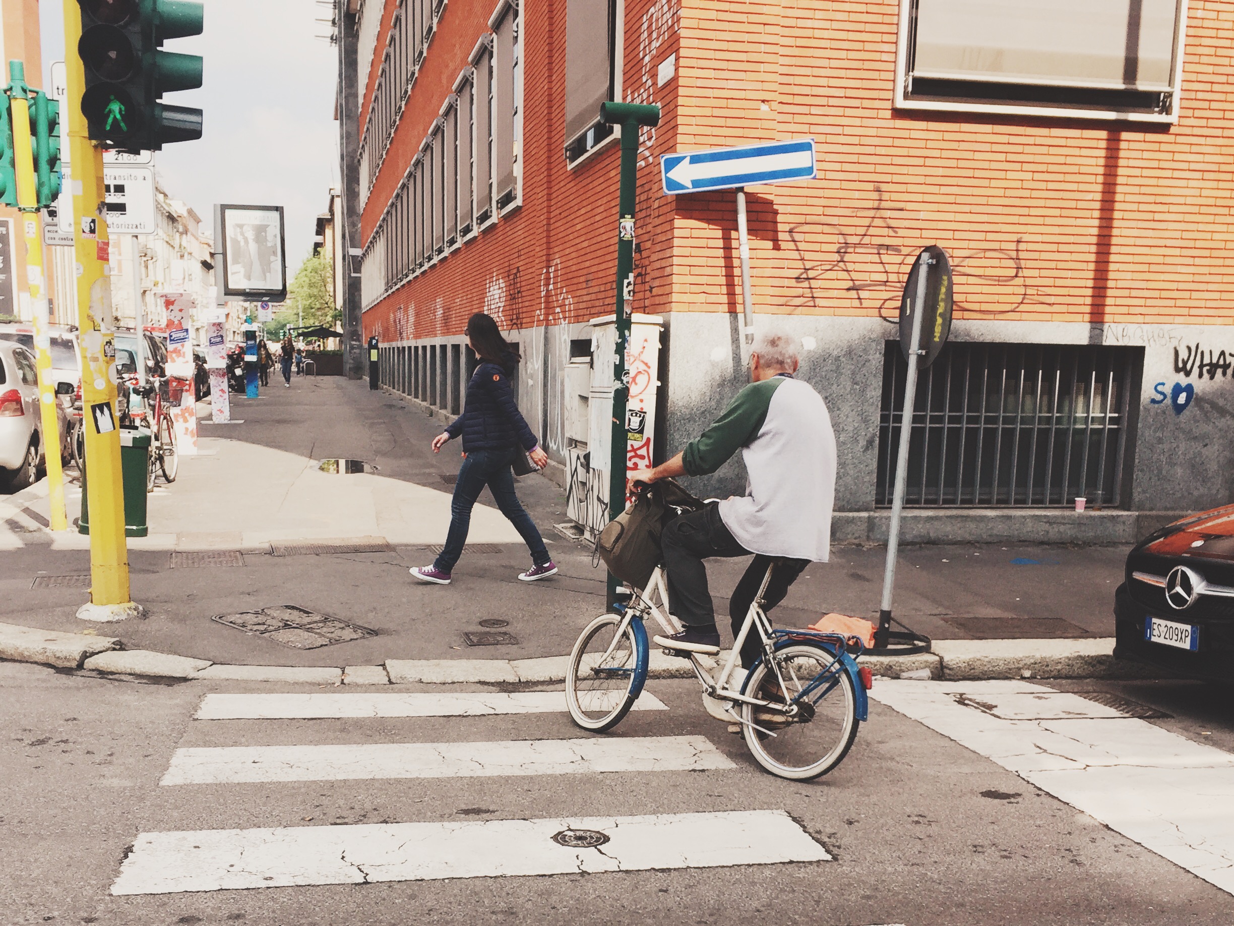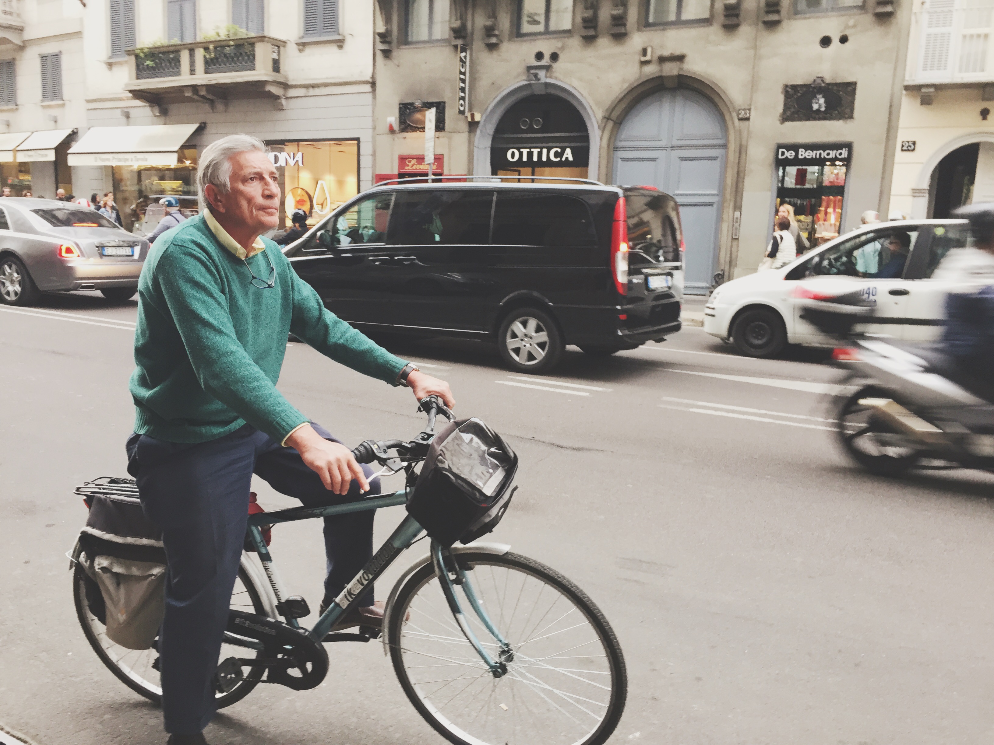 «Велосипедисты должны спешиваться на переходе!» — кричат московские враги велосипедизма. Этот миланский сеньор ничего об этом не знает. Кстати, наверняка этот страшный нарушитель ПДД экономит кучу средств из фонда здравоохранения, ведь велосипед помогает пожилым людям поддерживать бодрость духа и тела.