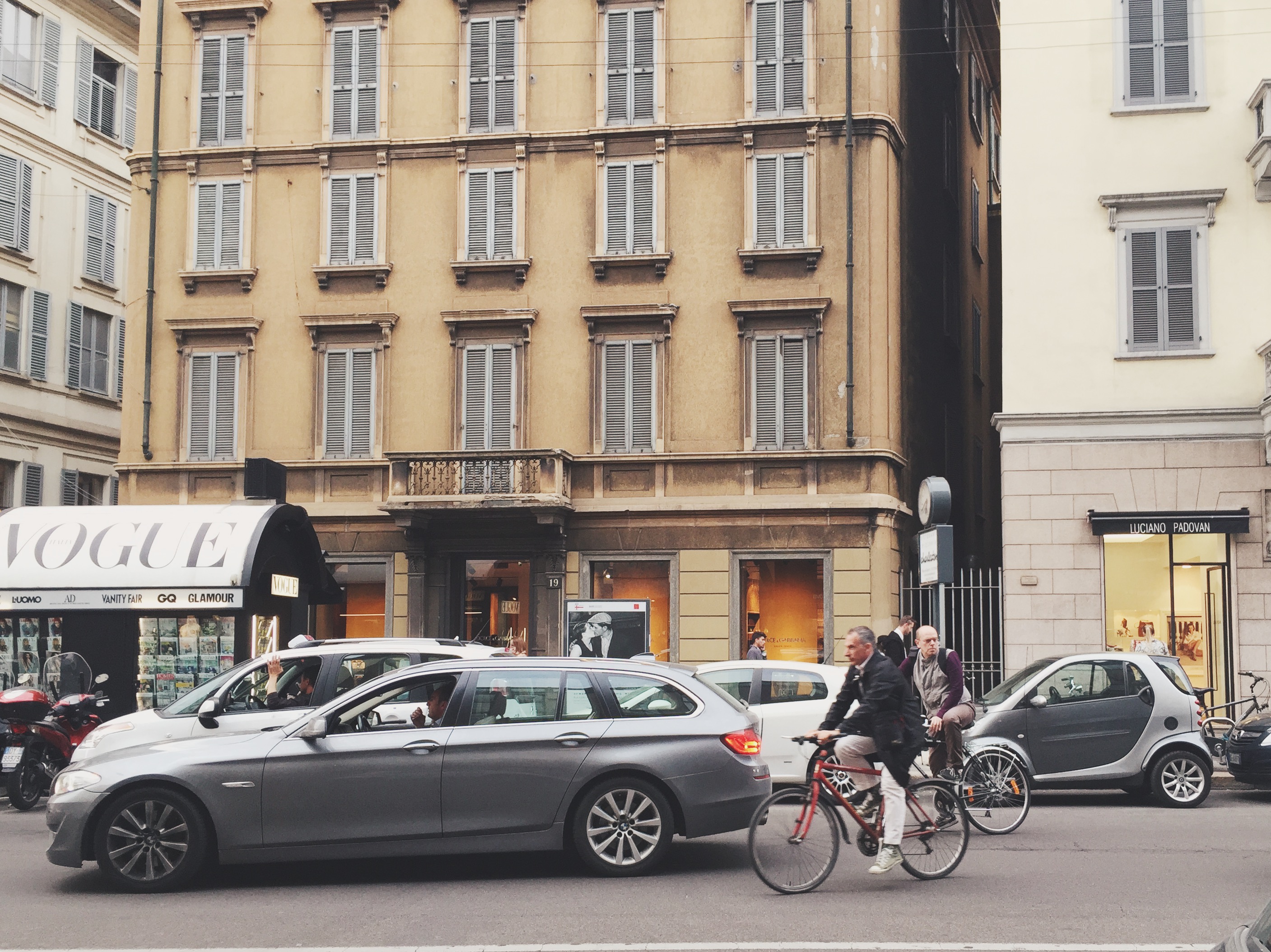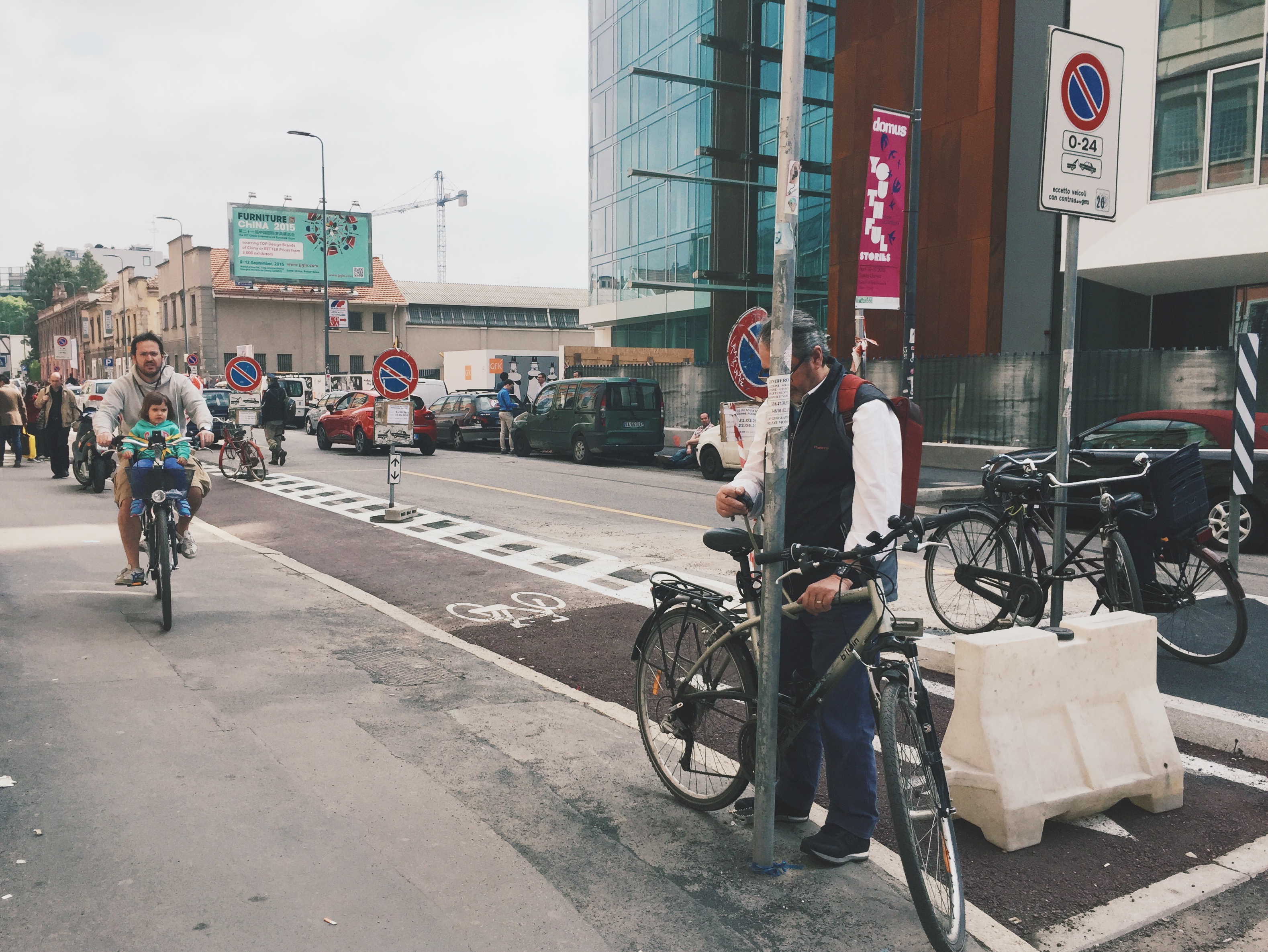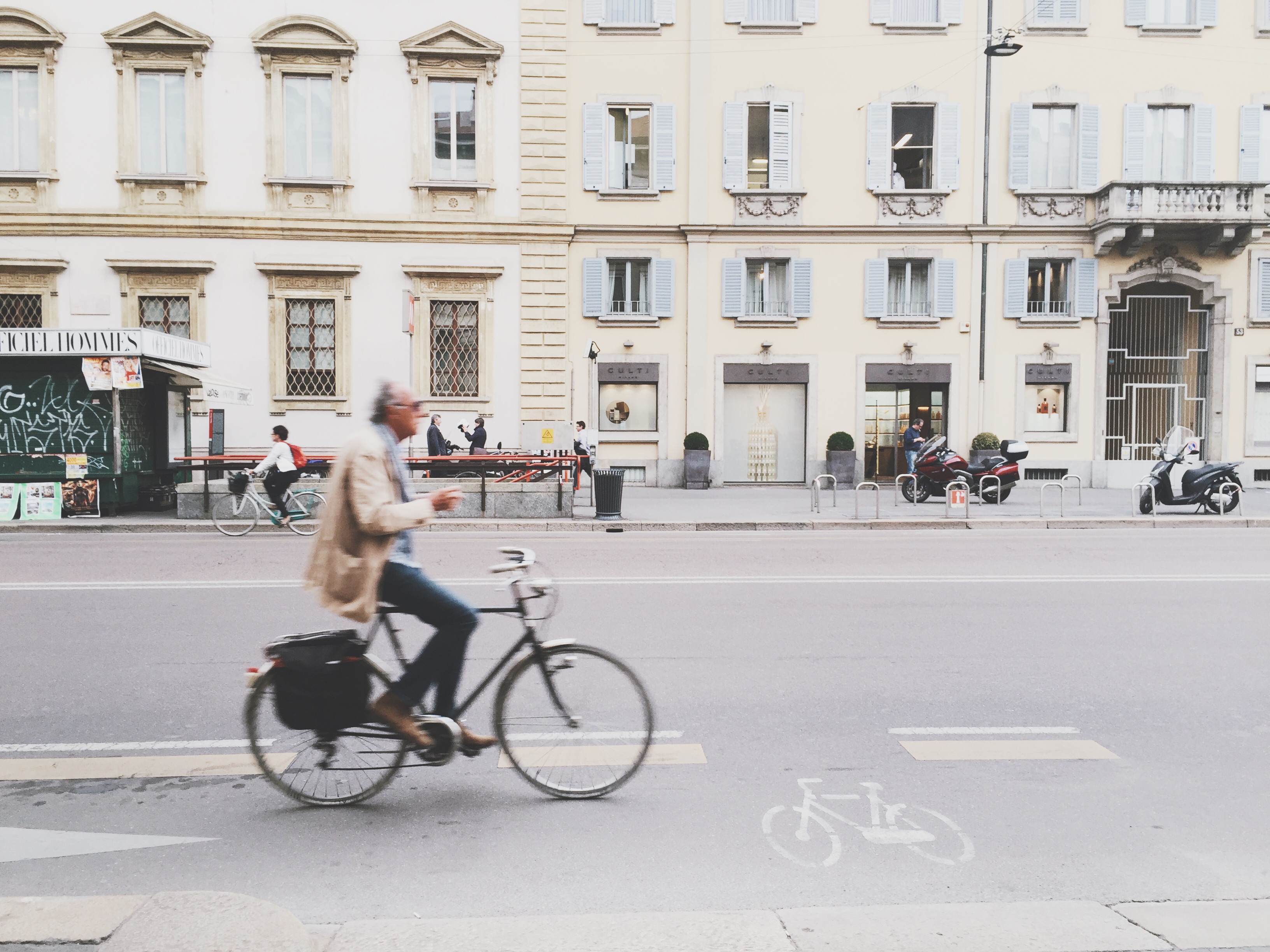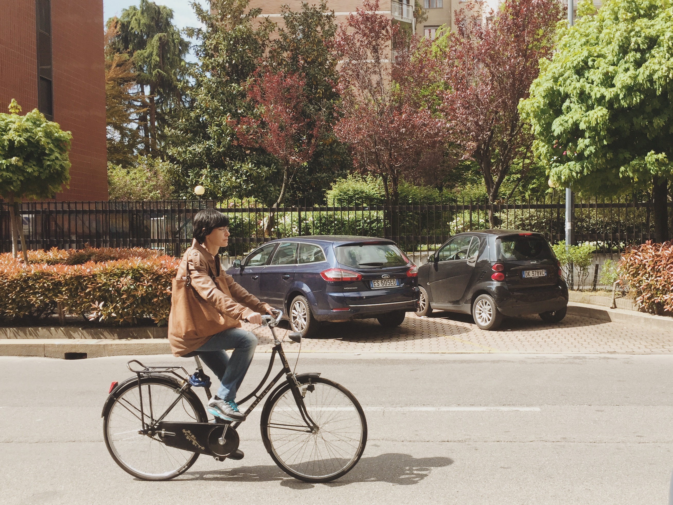 При существующих в Милане ограничениях скорости, местные велосипедисты могли бы вполне успешно соперничать с машинами, но вместо этого они в полной мере проявляют специфику национального характера. Итальянцы шумные, бойкие, но неспешные. Это дико бесит, когда ты стоишь в очереди на кассу, но радует, когда мимо тебя степенно едут на велосипеде симпатичные, хорошо одетые люди.