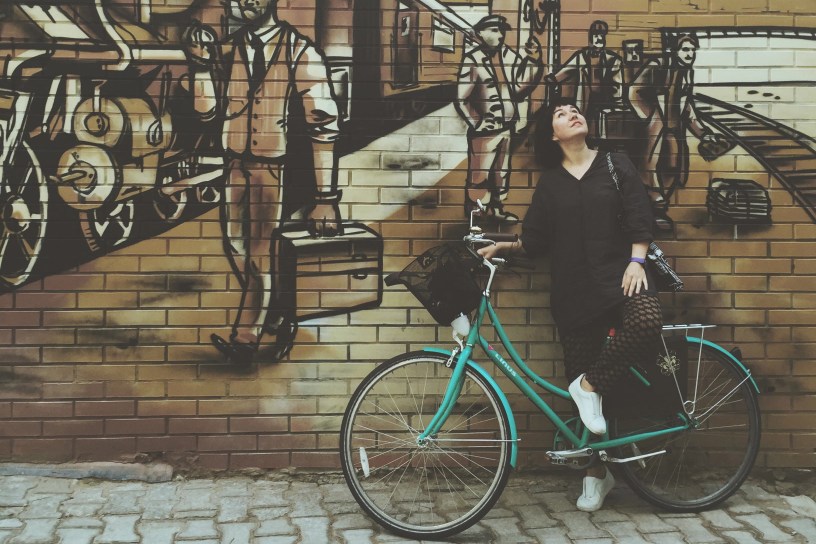 Странное дело, но я бы никогда не заметила такого однообразия жизни, если б не начала фиксировать все свои поездки на трекер Cycly. Даже ездить на велосипеде одной дорогой сто раз подряд, все равно каждый день все будет немного иначе. Разные ощущения, разные впечатления. Погода тоже разная. Все жалуются на плохое лето, но все равно на улице весь этот месяц было слишком тепло, чтобы продемонстрировать возможности поездок на велосипеде в пиджаках, всевозможных плащах и жакетах с меховой оторочкой. Надо было затевать эксперимент в сентябре-октябре, было бы разнообразней. Может, организую через пару месяцев сиквел.
