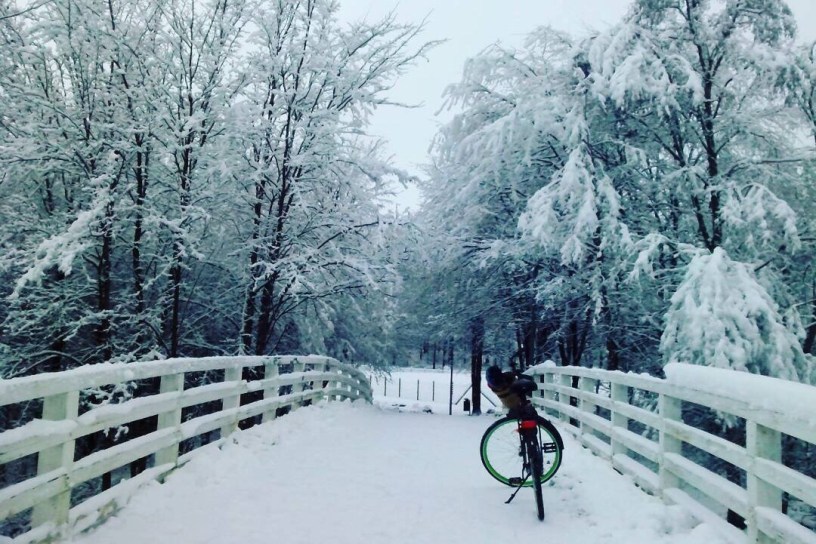У нас в Минске настолько все замело снегом, что надо ставить лыжи вместо колес и ехать на работу. Хотя вчера мы были на горках. Велик прет круто, шины надо только погрубей.