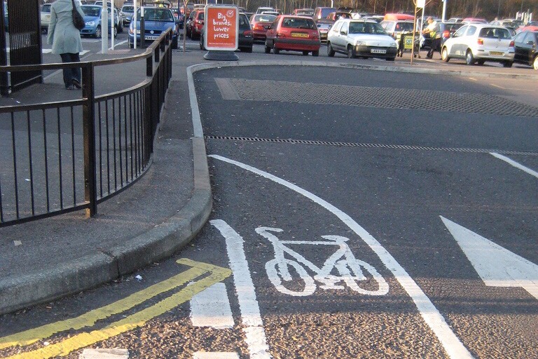А вот картинка от пользователя Flickr под ником Simon. Есть подозрение, что в мире существует альтернативное руководство по строительству велоинфраструктуры, в котором говорится, что дорожки должны утыкаться в тротуар, и никак иначе.