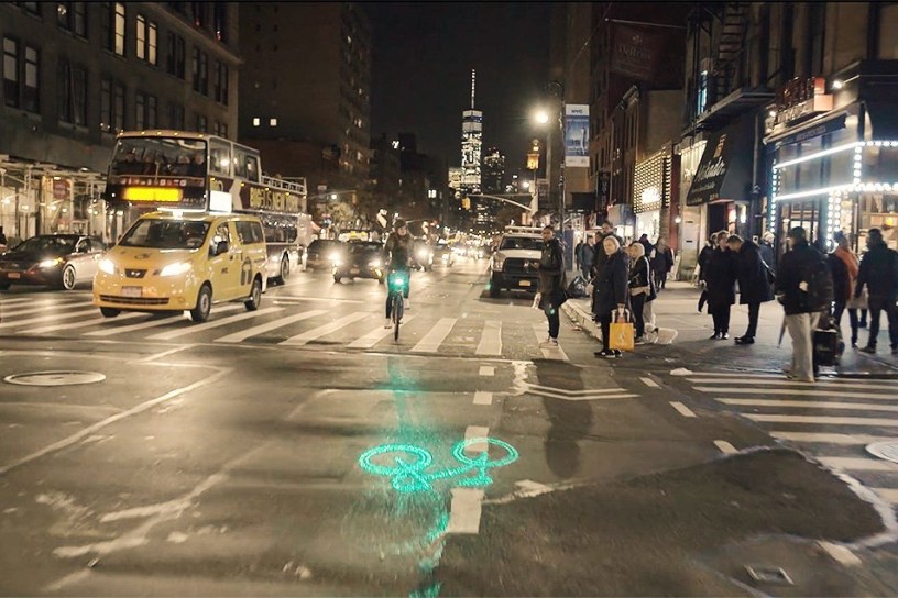 Парк Citi Bike насчитывает 1000 велосипедов, 250 из них в порядке эксперимента дополнят проектором, высвечивающим предупредительную пиктограмму на проезжую часть в шести метрах от велосипеда. Считается, что благодаря этому велосипеды в ночное время будут даже заметнее, чем при свете дня.