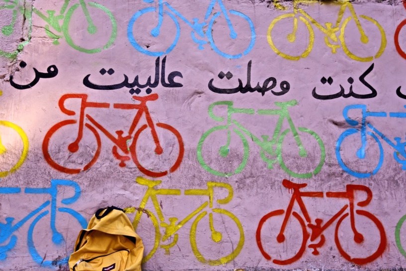 На фото: уличные художники призывают жителей Бейрута сесть на велосипед.