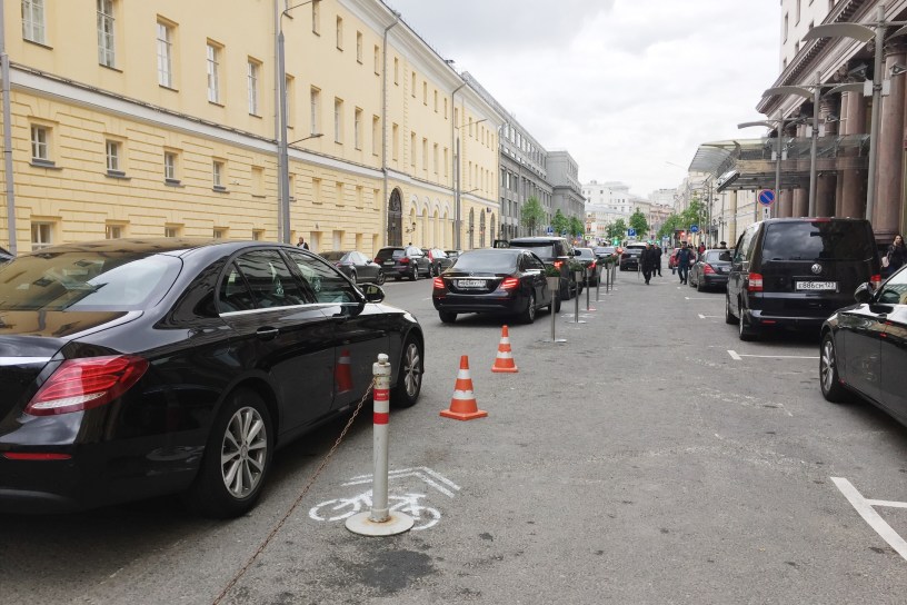 Напомним содержание предыдущей сериии: гостиница Ararat Park Hyatt добилась уничтожения велодорожки на Неглинной улице — там установили знаки «Конец велодорожки», стрёли велосипедную разметку и нанесли разметку для автомобильной парковки «ёлочкой». По данным #velonation, инициатором этих новаций стали хозяева гостиницы, которые действовали в обход департамента транспорта. Департамент, в свою очередь, обещал разобраться в ситуации.