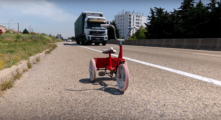 Из-за трагической небрежности он оказывается разлучён со своей хозяйкой — маленькой девочкой, путешествующей на семейном минивэне в компании родителей и старшей сестры. Велосипед пытается нагнать автомобиль, странствуя по горам и долам. Девочка тоже скучает и не снимает велошлем даже на пляже.