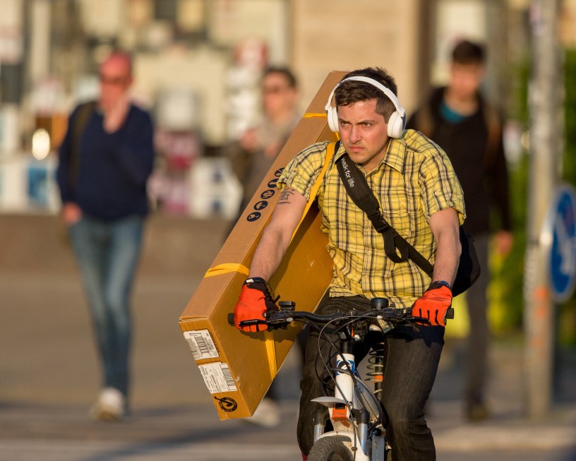 Разумное правило, если в вашем городе в распоряжении велосипедиста — узкая полоска между машинами и тротуаром, и это ещё в лучшем случае. В городе, где велотранспорт в приоритете, нет никаких проблем с тем, чтобы возить на велосипеде доски, диваны, контрабасы и прочих крупногабаритный груз.