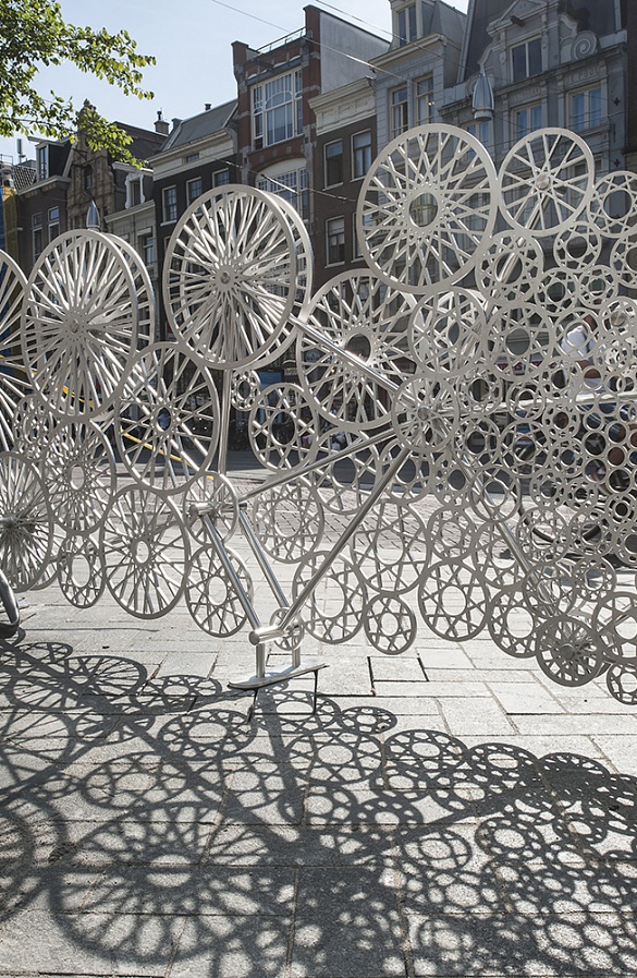 Ребята из Tjep придумали решетку из велосипедных колес и рам. С одной стороны эти облака прячут за собой велопарковки, а с другой дизайнеры подчеркивают, что прививочное для Амстердама нагромождение велосипедов — тоже своего рода искусство, всё зависит от точки зрения.