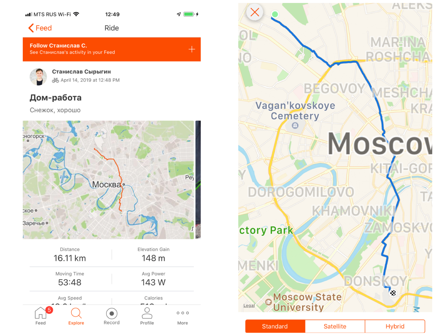 Хотя в фейсбуке у Станислава в качестве места службы указана Ассоциация велогнощиков, на работу, судя по данным приложения Strava, он ездит не в Крылатское, где находится её офис, а в район Даниловского кладбища, неподалеку от которого располагается “Нестлайн”.