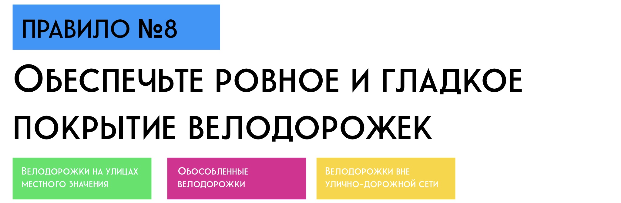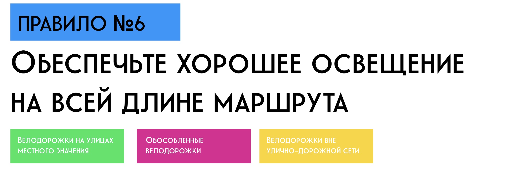 Часть из принципов ААА распространяется только на отдельные виды велодорог, другие — универсальные. Давайте же посмотрим, что именно предлагают ванкуверские проектировщики.