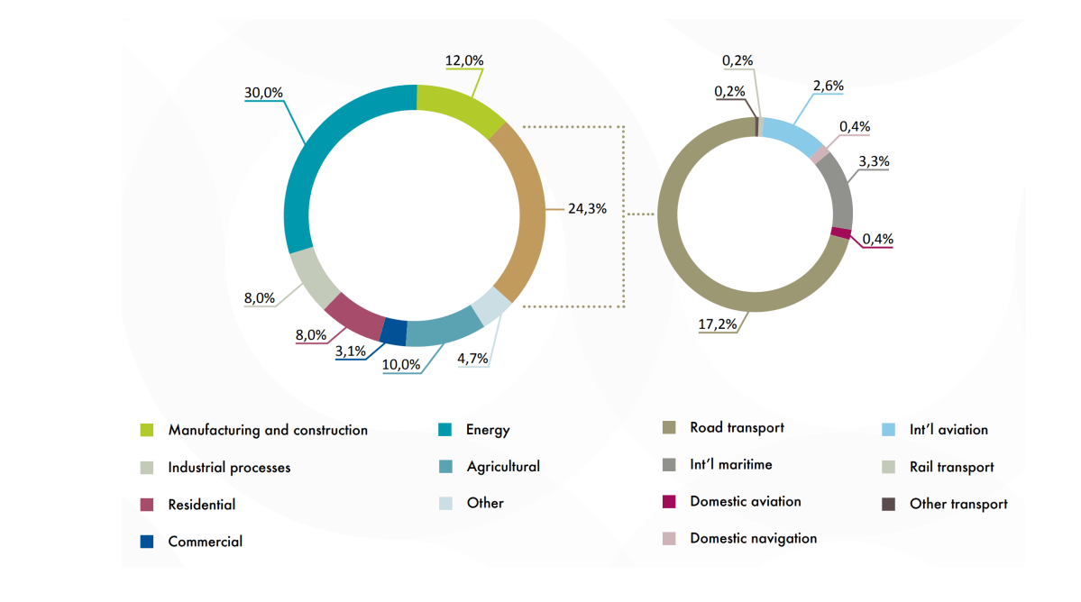 В Европе на долю транспорта приходится 24,3% CO2, и почти три четверти из них — это моторизованный транспорт: