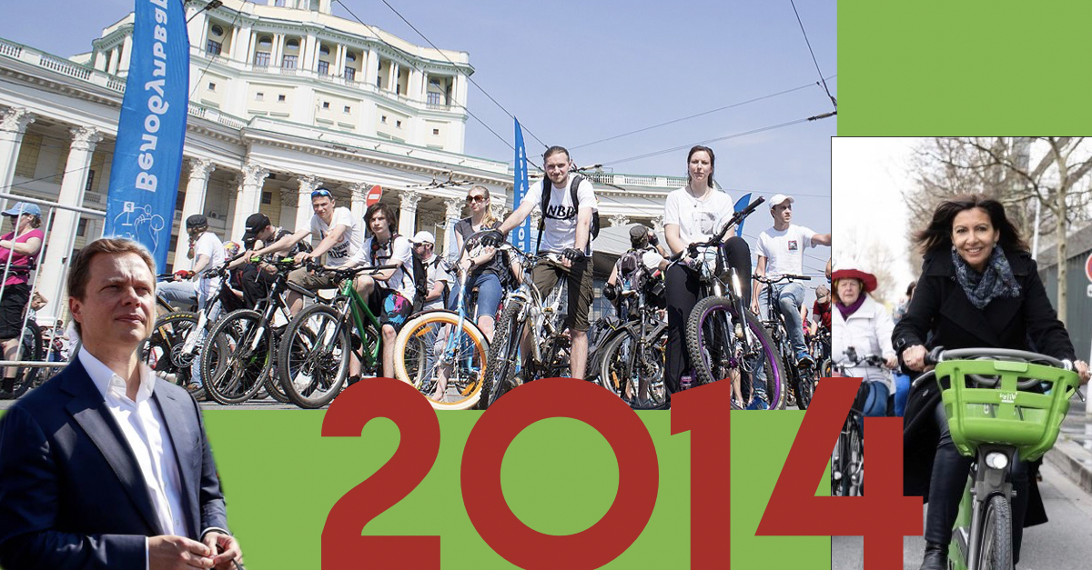 Мэром Парижа становится Анн Идальго, первая женщина, сумевшая избраться на этот пост. Идальго планирует превратить французскую столицу в лучший велогород мира. При ней в городе перекрывают для автомобилей набережные Сены (это решение команде Идальго приедаться отстаивать в суде), строят выделенные велодорожки и реконструирует главные городские площади и Елисейским поля, перераспределяя пространство в пользу пешеходов и велосипедистов.