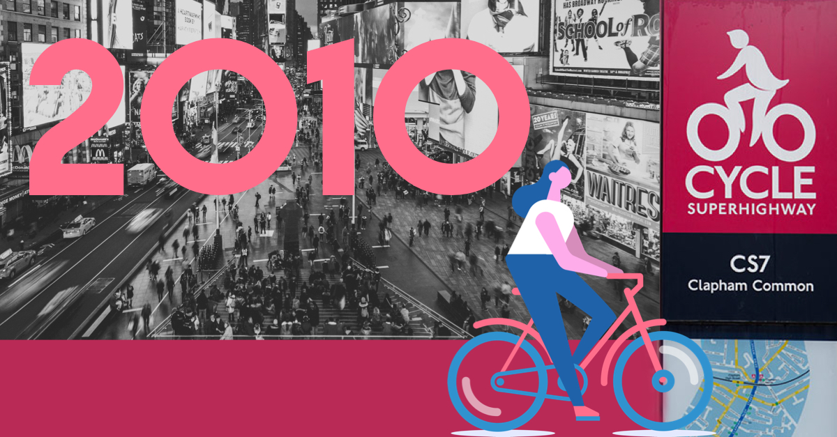 Мэр Борис Джонсон начинает велосипедизацию Лондона, анонсированную его предшественником Кеном Ливингстоном. В июле в городе начинает работать велопрокат Barclays Cycle Hire — в центральной части города появляются 315 станций, на которых размещены 5000 велосипедов. Строится первые велосипедные «суперхайвеи» — магистральные велодороги из Стратфорда в Олдгейт и из Вордсворта в Вестминстер. Несмотря на громкое название, пока это всего лишь голубая краска на асфальте. Только в середине десятилетия суперхайвеи станут полноценными выделенными велодорогами.