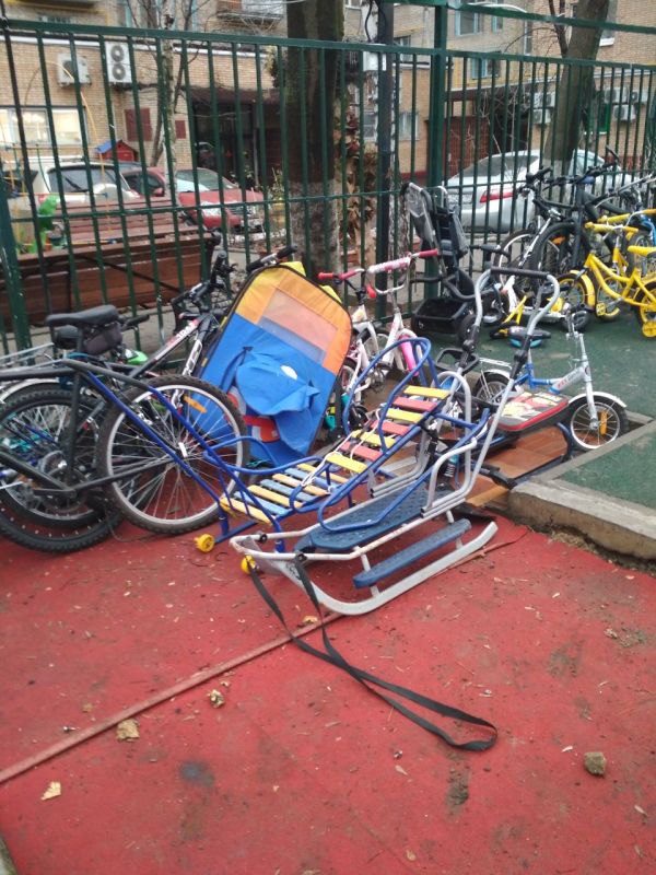 Дом построен в 1970-х годах, никаких условий для хранения там велосипедов, колясок и прочего хозяйства не предусмотрено, так что новшество пользовалось популярностью. Во дворе стояло 20-30 велосипедов плюс детский инвентарь. Но неожиданно у этого хорошего начинания возникла оппозиция в лице четы бездетных пенсионеров. Они пожаловались в управу района Дорогомилово, 16 декабря управа прислала жителям предписание устранить непорядок, а через несколько дней силами ГБУ Жилищник просто демонтировала оба навеса и их содержимое на улицу.