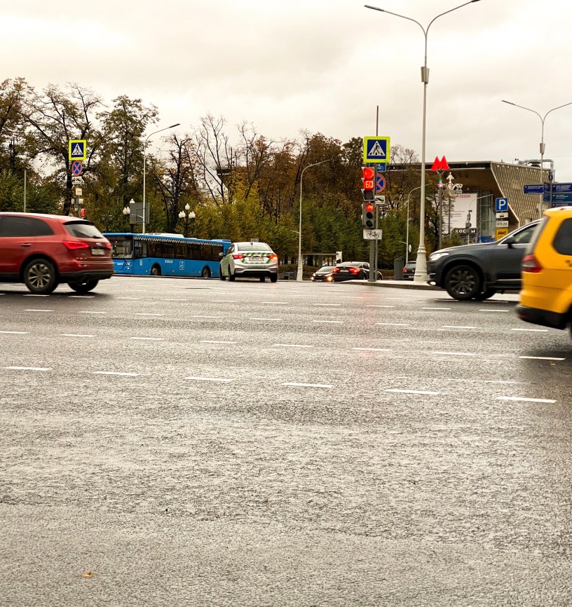 Изначально путь велосипедистам указывала разметка в виде стрелочек со знаком велосипеда. Она же напоминала водителям, что в этом месте они делят проезжую часть с велосипедистами. Но в какой-то момент она исчезла. Год назад я написала письмо в департамент транспорта с просьбой восстановить разметку и получила ответ с обещанием вернуть её в ходе очередной перерезметки всей улицы. Такая переразметка была этим летом, когда на Тверской меняли асфальт. Но значки и стрелочки на перекрёсток так и не вернулись. Хуже того, разметка велопереезда за прошедший год пропала и на другом большом перекрестке — бульварного кольца и проспекта Сахарова. Это, конечно, очень скверный знак: мало того, что мэрия проявляет робость, когда речь заходит о новой велоинфрастуктуре, она ещё и не поддерживает в порядке старую.