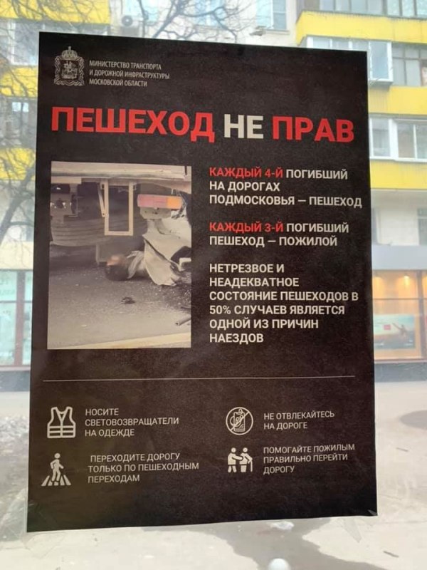 Но если правила не позволяют обвинять пешеходов, то ответственность за возможные ДТП несут те, кто согласовал строительство опасной улицы. Именно они (то есть ГИБДД, транспортный департамент и другие чиновники) должны побеспокоиться о том, чтобы переходы были в необходимом количестве и именно там, где они нужны. И даже вне пешеходных переходов улица должна быть такой, чтобы выход человека на проезжую часть — вынужденно, по ошибке или даже по глупости — не заканчивался трагедией.