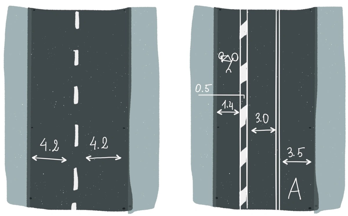 В чем проблема слишком узких велополос? Они подают неверный сигнал автомобилистам. Если на улице нет велоинфрастуктуры, забота о безопасности велосипедиста частично ложится на плечи водителя. А если велодорожка есть, то водитель получает сигнал, что об этом уже позаботилась городская администрация. Поэтому они начинают обгонять велосипедистов на минимальной дистанции и совершенно не ожидают, что те начнут вилять и выезжать за пределы велополосы, чтобы объехать какое-то мелкое препятствие.