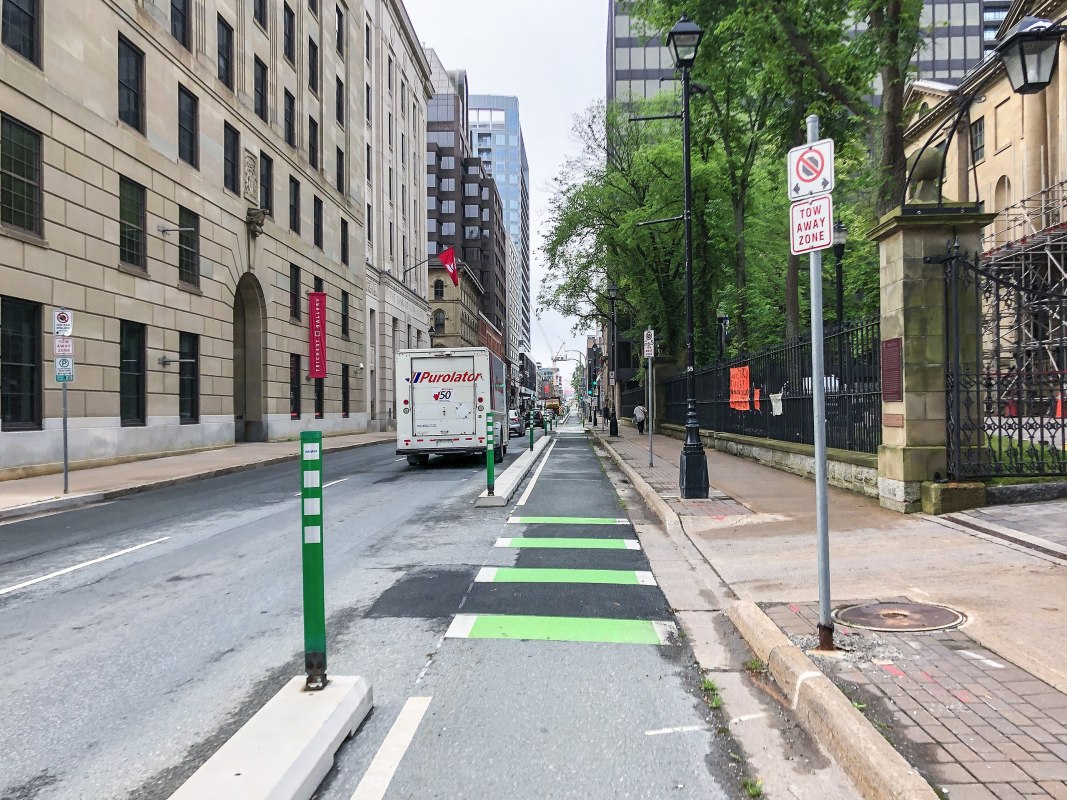 Город Пентиктон в Британской Колумбии открыл этим летом велодорожку, соединяющую два озера, между которыми он расположен, а в следующие пять лет собирается потратить на велоинфраструктуру 15 миллионов местных долларов. Сарния в провинции Онтарио расширяет свою велосеть. В Галифаксе уже построили треть из запланированных здесь 57 км велодорожек, включая маршрут по Холлис-стрит, которая идет прямо через центр города. В Монреале еще год назад открыли велодорожку на Сен-Дени, ставшую частью сети экспресс-велодорог. Торонто на волне пандемии развернул защищенные велодорожки по всему городу, последняя из которых открылась в этом сентябре. Все эти маршруты считаются временными, но будет большой ошибкой, если со временем город не сделает их постоянными.