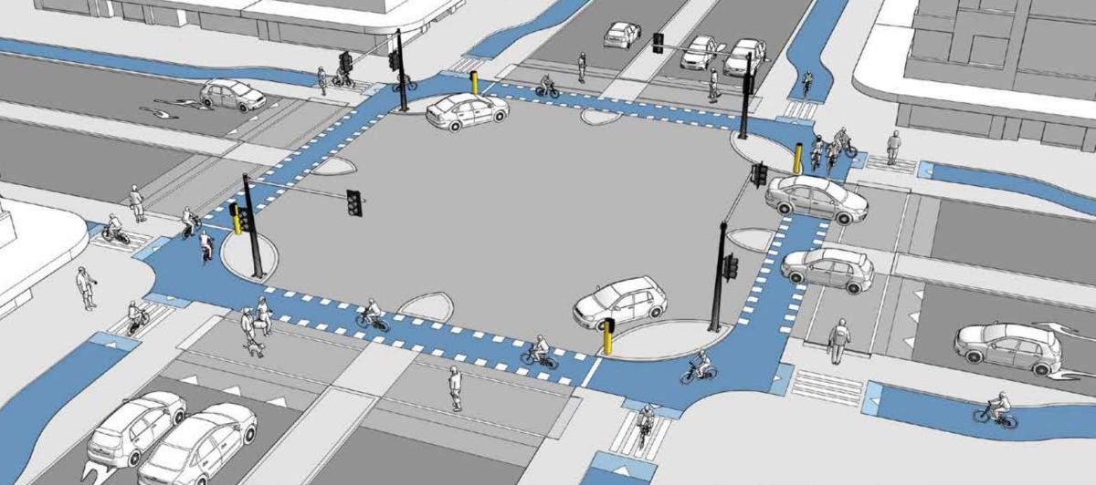 • Выдвинутые стоп-линии для велосипедистов, позволяющие проехать перекресток быстро и безопасно.