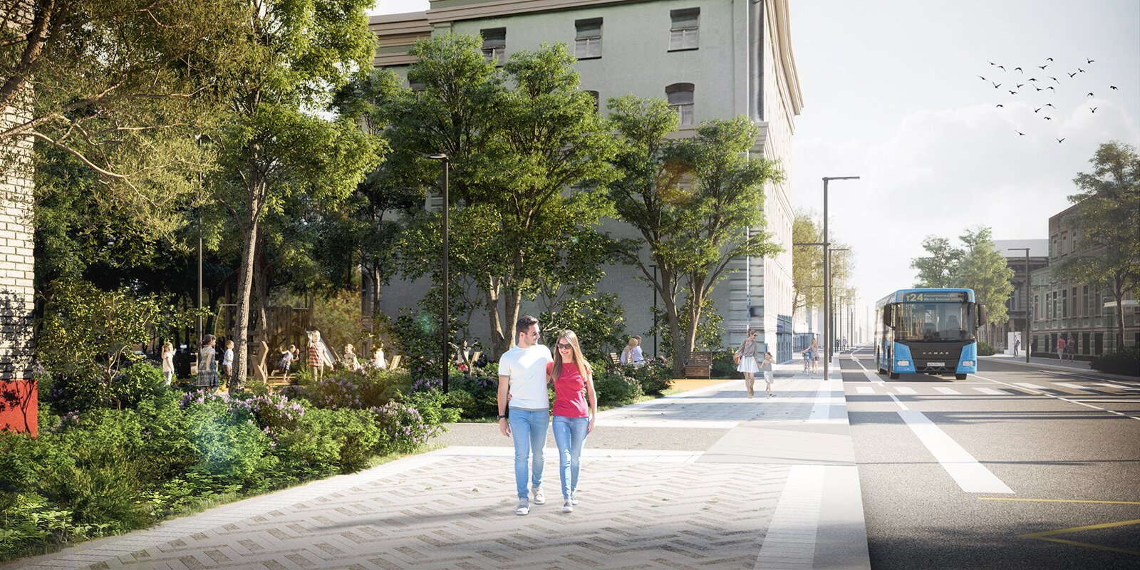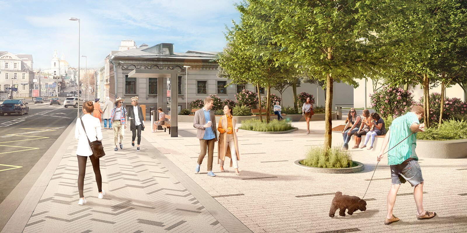 По данным с портала мэра, в этом году большой ремонт ждет 23 улицы в Басманном районе, 18 переулков в районах Арбат и Хамовники, в Тверском и Пресненском — Конюшковская улица и переулки между Тверской и Большой Никитской, Ленинский проспект от Университетского до Садового и Волоколамское шоссе. Есть не только адреса, но и визуализации — с плиткой, новыми деревьями, скамейками и даже велосипедистами. А вот велодорожек на них почему-то нет.