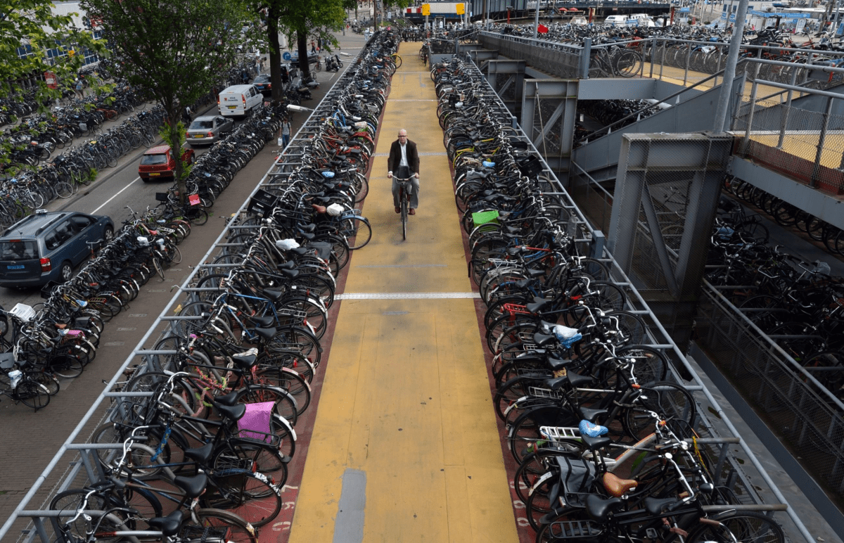 И хотя “Белый велосипед” просуществовал недолго, борьба с автомобилизацией продолжилась. В 1971 году количество смертей среди пешеходов в Амстердаме достигло 3300, включая 400 детей. Ответом на это стали акции прямого действия — велосипедисты блокировали своими велосипедами движение в местах ДТП, — подталкивающие городские власти к переменам. Это массовое движение помогло Амстердаму стать тем, чем он является сегодня, — одним из самых живых городов планеты. А также городом, где велопрокат играет куда меньшую роль, чем в других местах, — просто потому, что количество собственных велосипедов у людей здесь невероятно высоко.