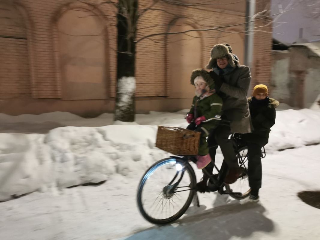 Катя Ну во-первых, это красиво) Это удобно и это быстрее, чем на общественном транспорте, если брать в расчет наш маршрут. Каждый день я отвожу ребенка в детский сад и забираю из сада. По пути домой мы заезжаем в магазин за продуктами. На трамвае+пешком этот путь занимает от получаса в одну сторону. На велосипеде — 15 минут ровно. Мы начали ездить в ту весну, когда началась пандемия и был первый локдаун. Чтобы не сойти с ума в заточении каждый вечер, я брала ребенка и мы делали круг по району — 10км.