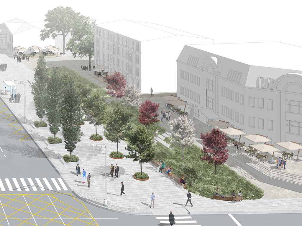 На углу Красной Пресни и Трехгорного Вала планируем создать уютную видовую зону с детской площадкой и местами отдыха, которая станет новой точкой притяжения для жителей района и работающих поблизости людей.